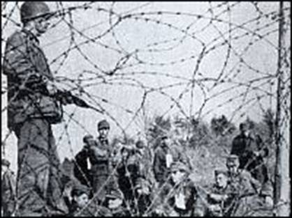 Lager Sinzig mit mehr als 300 000 Gefangenen, Luftaufnahme vom 25. 4. 1945 Mit weiterem Vordringen der Alliierten nach Osten legen die Amerikaner noch zahlreiche weitere Gefangenenlager auf deutschem Boden an. Lager entstehen bei Aalen, Baden-Württemberg Adelsdorf, Bayern Aigen, Böhmerwald Alsdorf, Nordrhein-Westfalen Altenstadt, Bayern Amberg, Bayern Ansbach, Bayern Artern, Bezirk Halle, Aschaffenburg, Bayern Asperg, Baden-Württemberg Auerbach, Bayern Augsburg-Oberhausen, Bayern Babenhausen, Hessen Bad Aibling, Bayern Bad Homburg, Hessen Bad Mergentheim, Baden- Württemberg Bad Nauheim, Hessen Bad Reichenhall, Bayern Bad Salzschlirf, Hessen Bad Tölz, Bayern Bad Wildungen, Hessen Bamberg, Bayern Bebra, Hessen Berchtesgaden, Bayern Berlin-Lichterfelde, Berlin-Wannsee Berlin-Zehlendorf Bischofswiesen, Bayern Bobingen. Bayern Bremerhaven-Weddewarten Bruchsal, Baden-Württemberg Bruck, Bayern Burgau, Bayern Burghausen, Bayern Butzbach, Hessen Coburg, Bayern Dachau, Bayern Darmstadt, Hessen Ebensee, Oberösterreich Elsenfeld, Bayern Ens an der Ens, Österreich Erding, Bayern Erlangen, Bayern Eschborn, Hessen Eschwege, Hessen Falkenstein, Hessen Feucht, Hessen Flossenbürg, Bayern Frankenberg, Bezirk Chemnitz Frankenberg, Hessen Frankfurt-Niederrad, Frankfurt-Zeilsheim, Frauendorf, Bayern Freising, Bayern Friesdorf, Nordrhein-Westfalen Fürstenfeldbruck, Bayern Fürth, Bayern Gabersee, Bayern Garmisch-Partenkirchen, Bayern Gars, Bayer Gemünden, Bayern Gießen-Wieseneck, Hessen Glasenbach, Salzburg Göggingen, Bayern Göppingen, Baden-Württemberg Golling, Salzburg Griesheim, Hessen Großauheim, Hessen Haar, München Hallein, Salzburg Hammelburg, Bayern Happurg, Bayern Hausham, Bayern Heimbach, Hessen Herborn, Hessen Herrsching, Bayern Hersbruck, Bayern Hessisch-Lichtenau, Hessen Hintersee, Salzburg Hirschberg, Hessen Hof, Bayern Hof-Moschendorf, Bayern Hohenbrunn, Bayern Hundstadt, Hessen, Ingolstadt, Bayern Ipsheim, Bayern Kamp-Lintfort, Nordrhein-Westfalen Kaprun, Salzburg Karlsfeld, Bayern Karlsruhe Katzenfurt, Hessen Kaufbeuren, Bayern Kesterbach, Hessen Kleinmünchen, Oberösterreich Königstein, Hessen Korbach, Hessen Lambach, Oberösterreich Landsberg, Bayern Landshut, Bayern Langenzenn, Bayern Langlau, Bayern Limburg, Hessen Linz, Oberösterreich Linz-Wegscheid, Lohr, Bayern Ludwigsburg, Baden-Württemberg Maisach, Bayern Manching, Bayern Marburg, Hessen Markt Bibart, Bayern Memmingen, Bayern Mittenwald, Bayern Mohlsdorf, Thüringen Moosburg, Bayern Münchberg, Bayern München München-Allach München-Daglfing München-Freimann Münster Natternberg, Bayern Naumburg/Saale, Sachsen-Anhalt Neumarkt, Bayern Neustadt, Hessen Neu-Ulm, Bayern Nieserroden, Baden-Württemberg Nürnberg Nürnberg-Erlenstegen Nürnberg-Langwasser Oberdachstetten, Bayern Oberursel, Hessen Oberursel-Hohemark Ochsenfurt, Bayern Ochsenpferch, Baden-Württemberg Peuerbach, Oberösterreich Planegg, Bayern Plankstetten, Bayern Plattling, Bayern Possenhofen, Bayern Pupping, Oberösterreich Recklinghausen, Nordrhein-Westfalen Regensburg, Bayern Reinhartshausen, Bayern Rockenberg, Hessen Rosenheim, Bayern Roth, Bayern Salzburg Salzburg Gnigl Sankt Gilgen, Salzburg Schliersee, Bayern Schnuttenbach, Bayern Schwabach, Bayern Schwabmünchen, Bayern Schwäbisch-Hall, Baden-Württemberg Schweiklberg, Bayern Stadt Allendorf, Hessen Stein, Bayern Stephanskirchen, Bayern Steyr, Oberösterreich Straubing, Bayern Stuttgart-Zuffenhausen Sulzbach-Rosenberg, Bayern Tann, Bayern Teugn, Bayern Trostberg, Bayern Tutzing, Bayern Ulm Vilshofen, Bayern Weiden, Bayern Wels, Oberösterreich Wendelhöfen, Bayern Werneck, Bayern Wickelskreuth, Bayern Wien Wiesbaden-Dotzheim Wiesloch, Baden-Württemberg Wolfratshausen, Bayern Würzburg Würzburg-Heidingsfeld Wuppertal Zell am See, Salzburg Ziegenhain, Hessen Die Liste ist entnommen aus: Kurt W. Böhme, Die deutschen Kriegsgefangenen in amerikanischer Hand Europa, München 1973 Erlebnisberichte aus den genannten Lagern können hier veröffentlicht werden. Zusendung erbeten an Die nichtrheinischen Lager werden meist nach einiger Zeit aufgelöst und die Insassen an der Rhein gebracht. Es ist davon auszugehen, daß sich schließlich fünf bis sechs Millionen Deutsche in den US-Lagern am Rhein befinden.